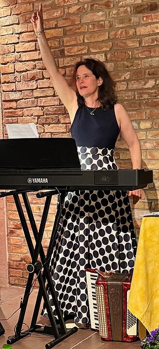 Es erklangen ebenso Melodien aus der Czardasfürstin von Emmerich Kalman, „Ich bin von Kopf bis Fuß auf Liebe eingestellt“ aus dem Blauen Engel von Friedrich Holländer, aber ebenso Lieder wie „Ein Freund, ein guter Freund“ oder „Heute ist der schönste Tag in meinem Leben. Trotz aller Ernsthaftigkeit des Themas konnten die Herzen der Zuhörenden so aber auch mit der Leichtigkeit und der Schönheit der Musik erreicht und berührt werden.