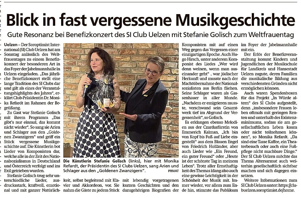 Auch in diesem Jahr übergab der Uelzener Serviceclub Soroptimist International eine finanzielle Unterstützung an die Musikschule Uelzen.